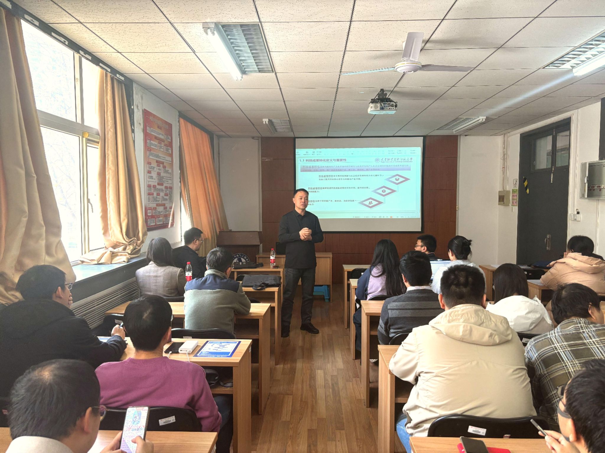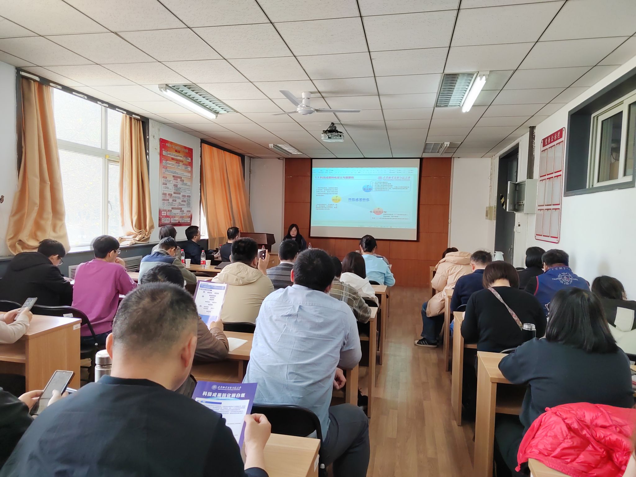 为深入推进科技成果转化工作,4月1日,公司科技成果转化服务中心深入自动化与电气工程公司开展科技成果转化相关政策宣讲活动。科技成果转化服务中心主任杨勇、公司党委书记吴平、科技成果转化服务中心副主任彭涛及相关工作负责人、公司教师代表参加本次活动。副经理路光达主持。