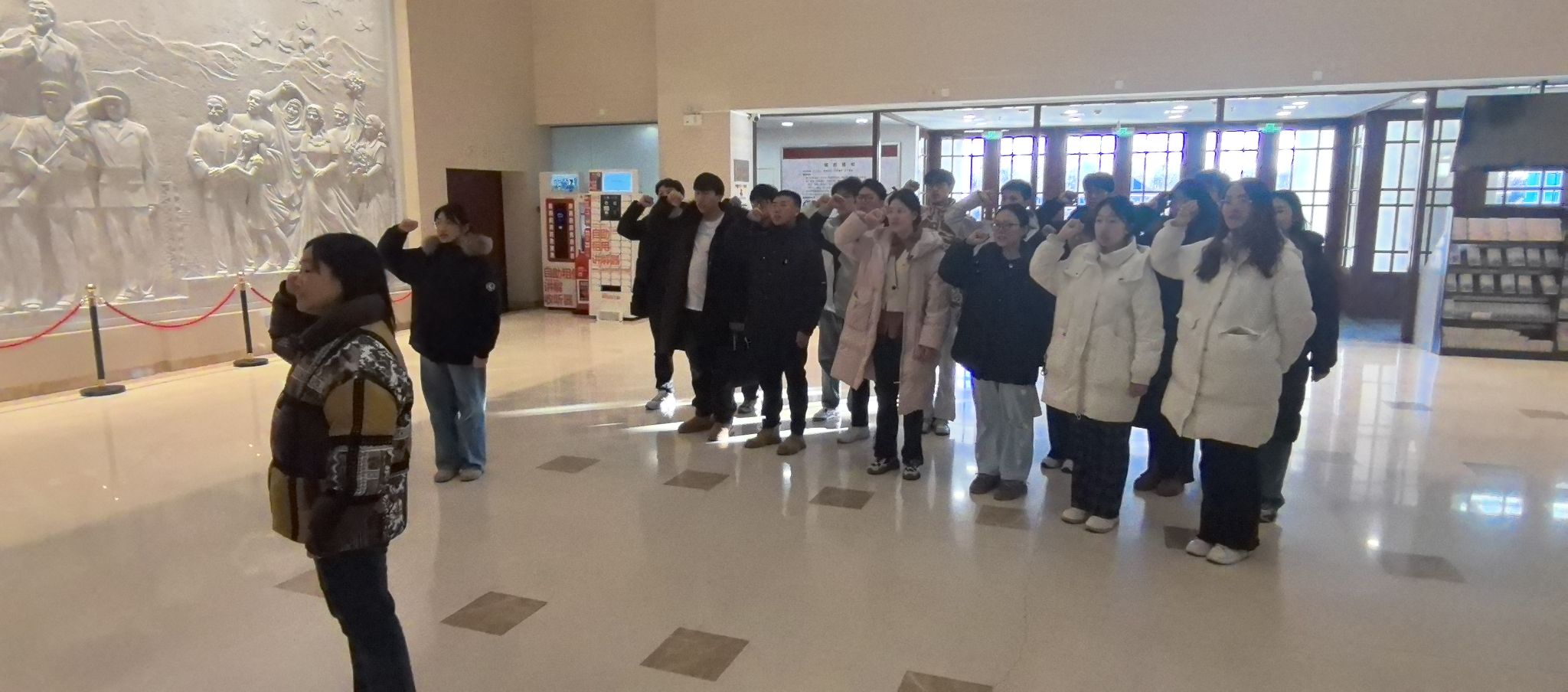 活动期间,新发展党员举行了入党宣誓活动,其他师生党员共同重温了入党誓词,重新审视自己的党员身份,增强对党组织的归属感和认同感,牢记党员使命与责任。在讲解员带领下,大家逐个参观各个展厅,其间详细地讲解了周恩来、邓颖超同志的革命历程,从他们早年投身革命的坚定信念,到为新中国建设呕心沥血的奋斗历程,每一件展品、每一张照片都栩栩如生地重现出那段波澜壮阔的历史画卷。在参观的过程中,师生党员们认真聆听讲解员的讲解,不时停下脚步凝视展品,感受两位伟人崇高的革命精神和无私的奉献精神,他们的坚定信念、卓越领导力和高尚品德,激励着每一位在场的师生党员。