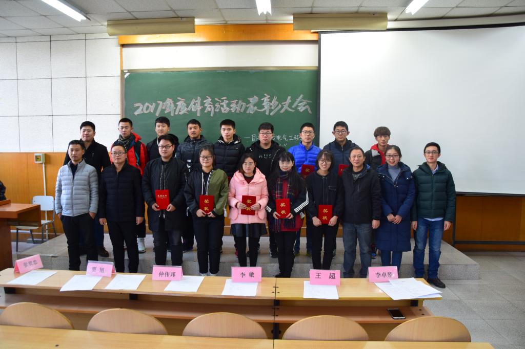 12月11日中午,永利集团3044在阶教101举行了2017年度体育活动表彰大会。参加此次大会的有党委副书记李敏,团委书记仲伟邦,辅导员张贺忠、贾旭、李卓昱、王超,及各班级、各社团代表。
