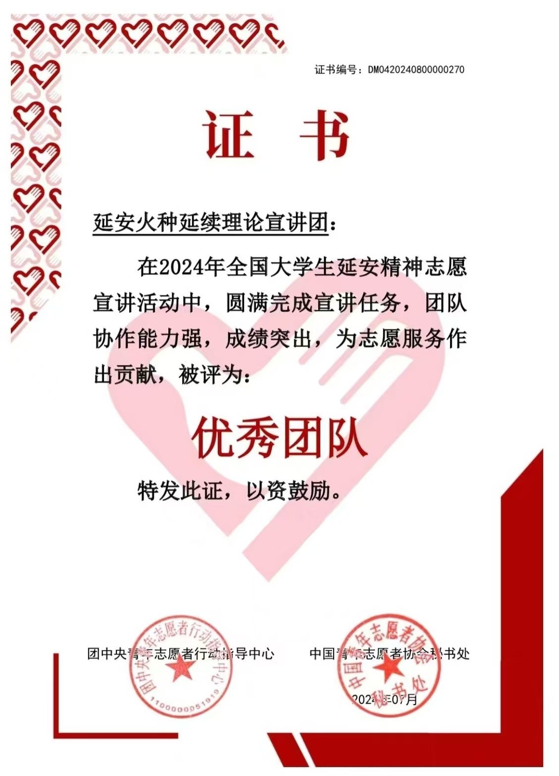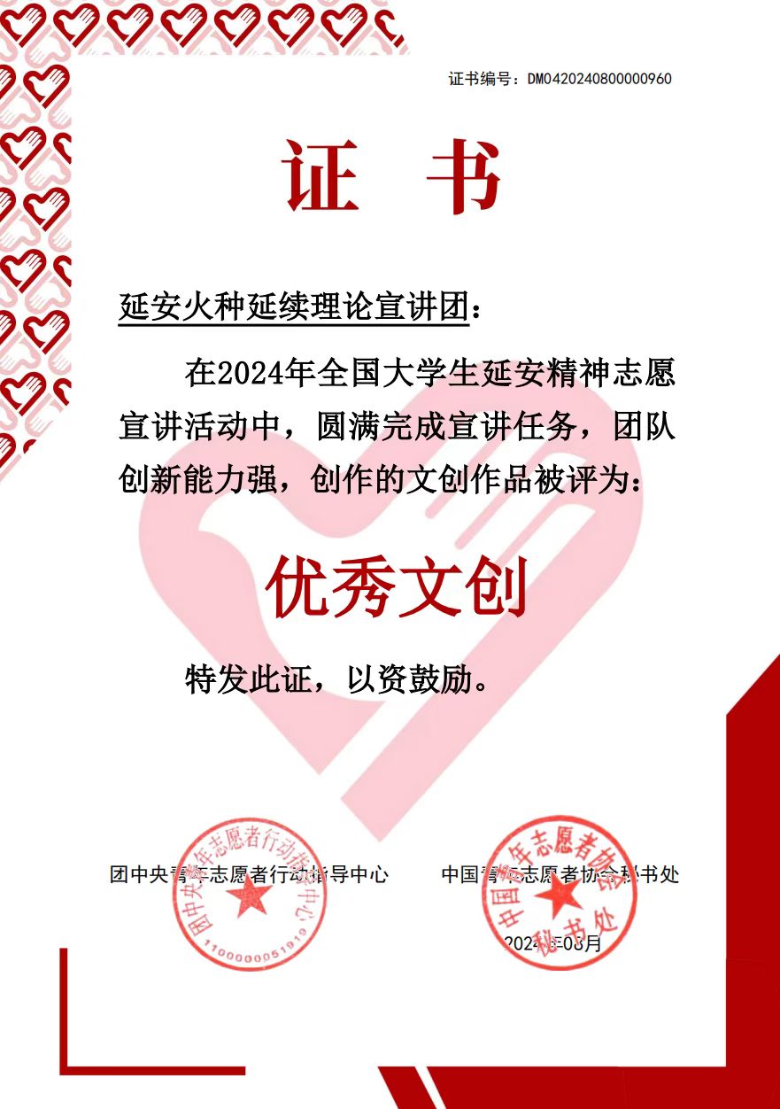 来自全国855所高校的1000支老员工志愿服务团队入选,其中含有公司的延安火种延续理论宣讲团(后简称“火种”宣讲团)。日前,团中央青年志愿者行动指导中心下发了“2024年全国老员工延安精神100支优秀宣讲团队名单”,公司“火种”宣讲团位列其中。