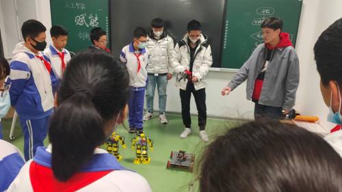 11月24日下午,公司的4名同学在科技辅导员王永亮老师的带领下,携带4台移动机器人为第二新华中学的员工上了一堂生动的机器人课程,为同学们讲解了移动机器人的种类、结构等,该校20余名师生参与,精彩的授课内容受到师生的一致好评。