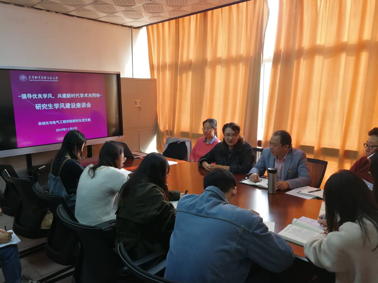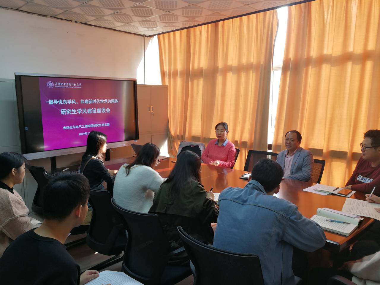 为倡导公司研究生坚定学术理想、远离学术禁区、把握学术规律、加强学术协作、勇攀学术高峰,争做有贡献的新时代研究生。11月6日上午,永利集团3044研究生党支部在自动化东楼301召开“倡导优良学风,共建新时代学术共同体”研究生学风建设座谈会。会议由党支部书记李敏主持,公司副经理赵丽、导师韩春晓、研究生秘书张宏鑫及研究生代表参加此次座谈。