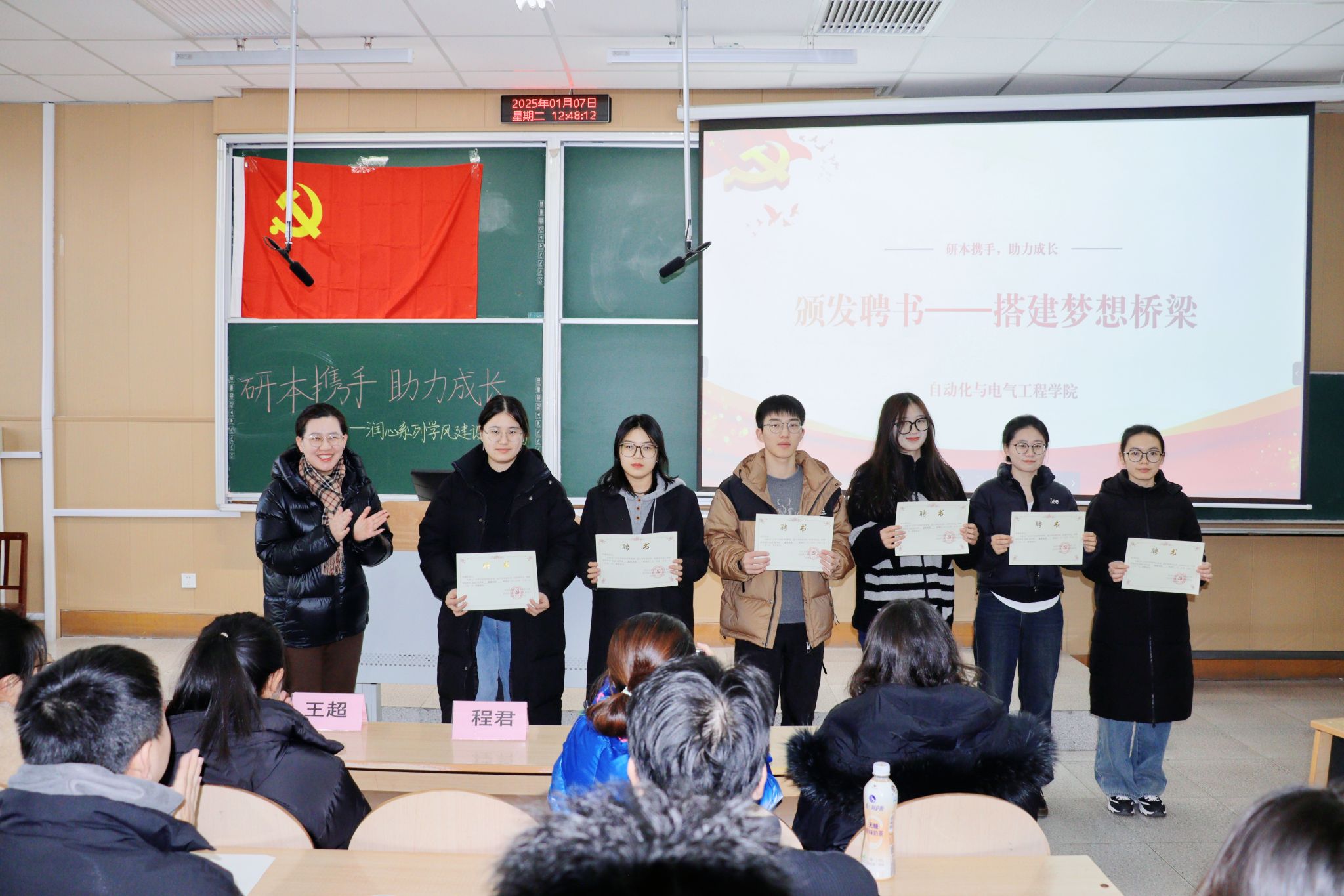 最后,程君和王超为考研帮扶团队的14位研究生代表颁发聘书,正式聘请为考研帮扶“朋辈导师”。