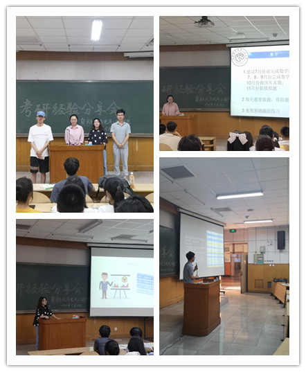 2021年5月18日,公司举办“‘研’途有你·筑梦起航”考研经验分享会,邀请2017级考研成功的优秀学子黄兴文、于洋、潘言心和孙含宇为学弟学妹们进行备考指导。