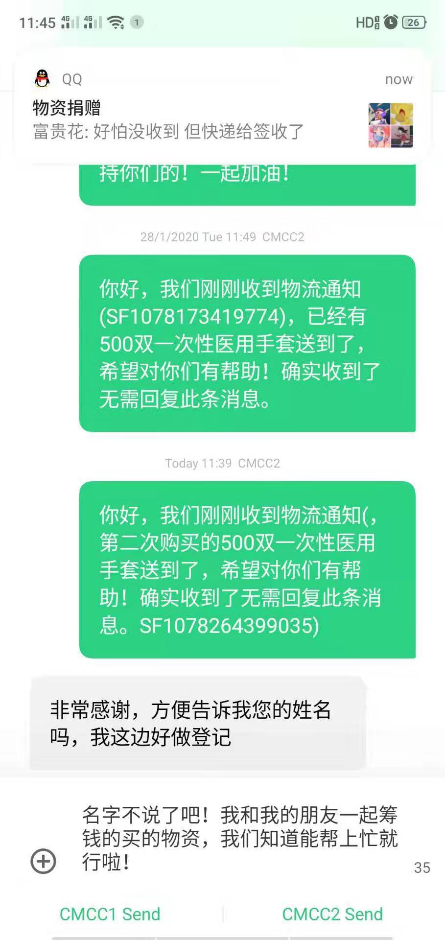 钱昭焱,电自测控党支部党员、电自1602班学习委员。自放假以来,钱昭焱就一直在关注疫情的发展。1月30日她在朋友圈看到一个朋友发起捐款,准备买一次性手套和口罩发往武汉。她立刻在微信上转账100元,参与了这次募捐。最终这次募捐一共募集资金3264元,买了两批手套和一批口罩发货至湖北中西医结合医院。她说:“虽然只是微薄之力,但能为疫情重区做出一点贡献也足够心满意足了。武汉加油,中国加油!”