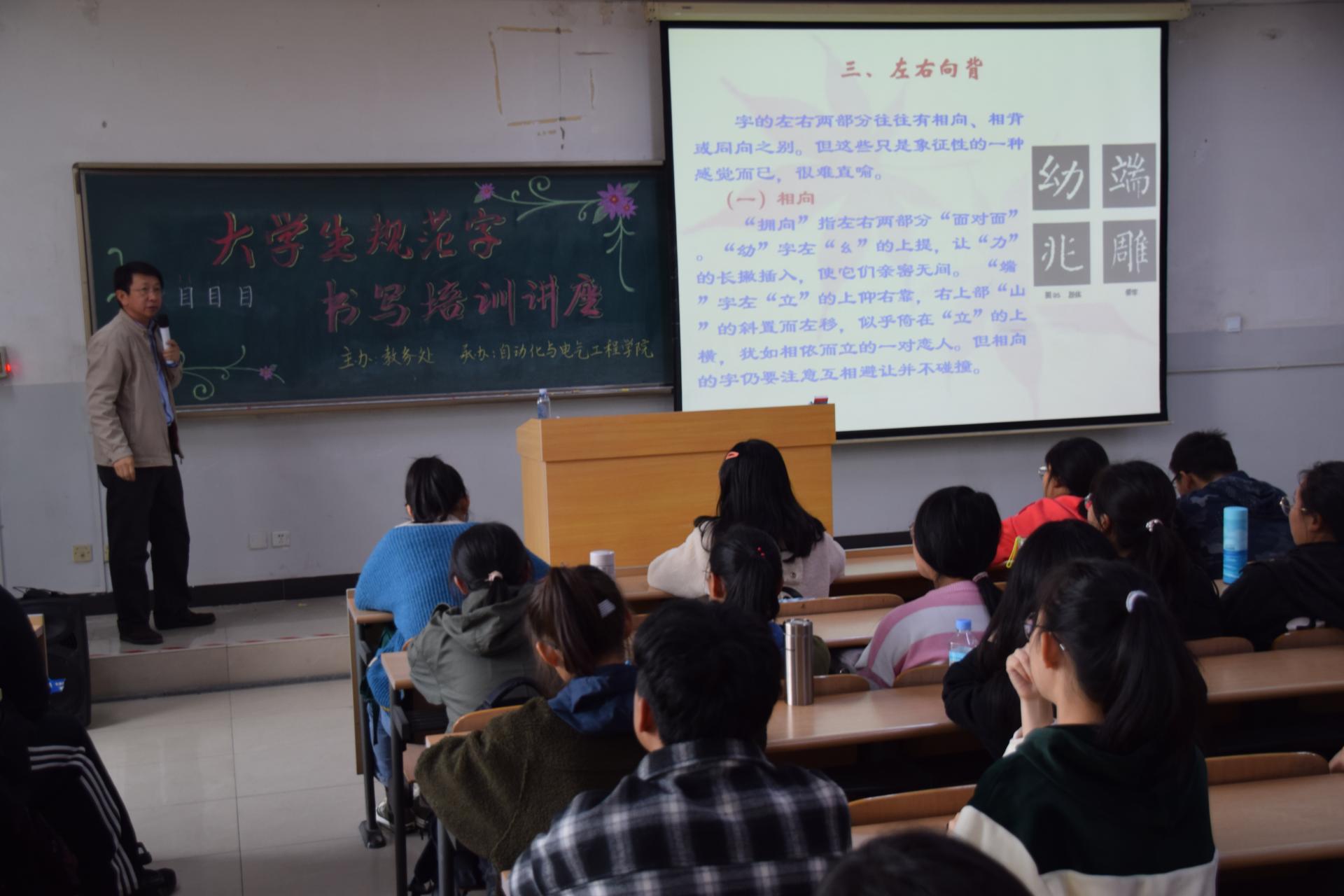 为提升同学们的钢笔、粉笔规范字书写技巧,2019年10月22日中午,由教务处主办、永利集团3044承办的“老员工钢笔、粉笔规范字书写大赛”培训讲座在第三教学楼206举行。本次培训邀请天津市书法家协会会员、公司书法课教师王旭东老师主讲,参加此次培训的是各公司选拔出来的优秀书写人才。