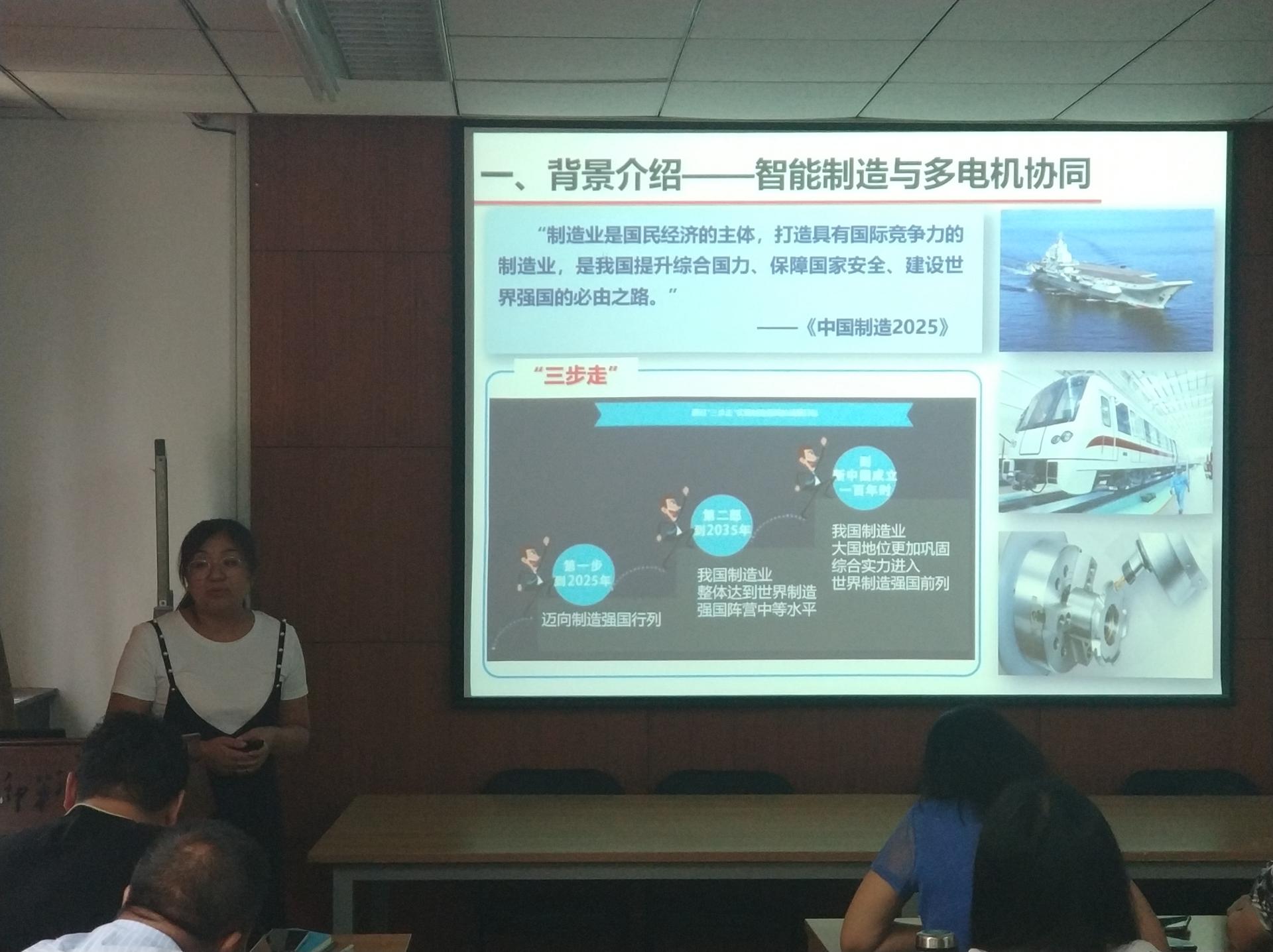 本次报告邀请公司新引进的张秀云博士主讲。张老师作了题为“智能制造与多电机协同”的报告,分别从研究背景、多电机系统中的耦合问题、复杂情况下的多电机控制策略、模型预测控制在多电机协同中的应用等方面介绍了该课题的研究现状,并对未来的研究方向进行了展望。