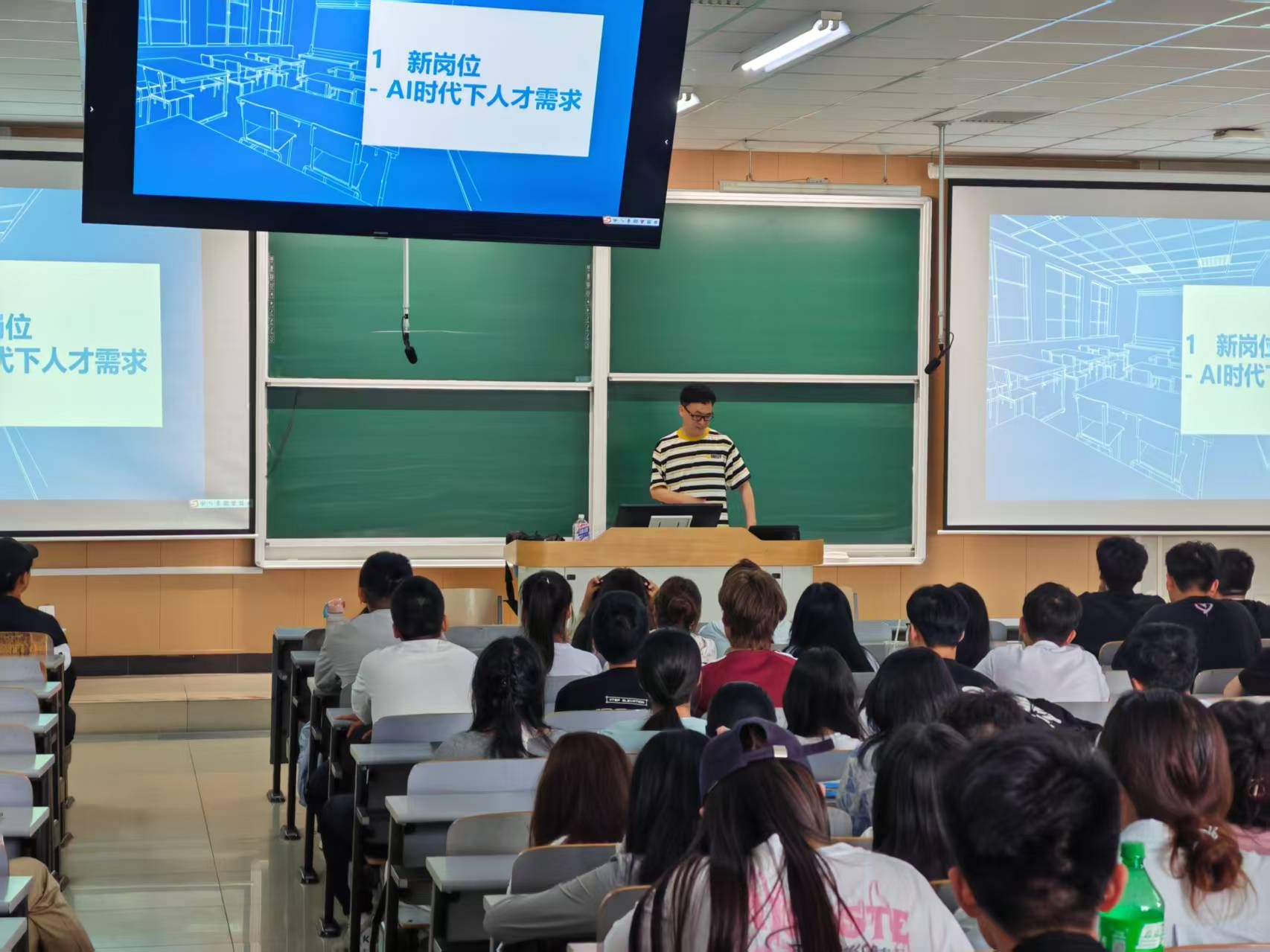 活动中,吕东结合自身职业发展历程从行业现状、职业选择、能力提升等多个维度展开分享,具体讲述了新技术AI互联网+、新课程5G+AI工业互联网、人工智能大模型、自动化控制等方面的专业知识,并展示智能园区、智能农场、智慧水务等数字化视频,迅速将同学们带入科技互联网与自动化深度融合的前沿场景。他强调,在校期间员工应注重专业知识学习与实践能力培养,鼓励员工积极参与实习、竞赛等活动,提升自身综合竞争力。